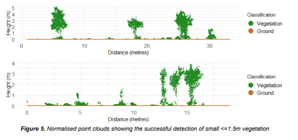 In total, the survey successfully captured low vegetation across 634 ha, with total canopy cover over the survey area found to be 93.2 ha. The data and evidence resulting from the LiDAR surveys demonstrate that the LiDAR methodology is appropriate and effective for monitoring early woodland creation and re-establishment.